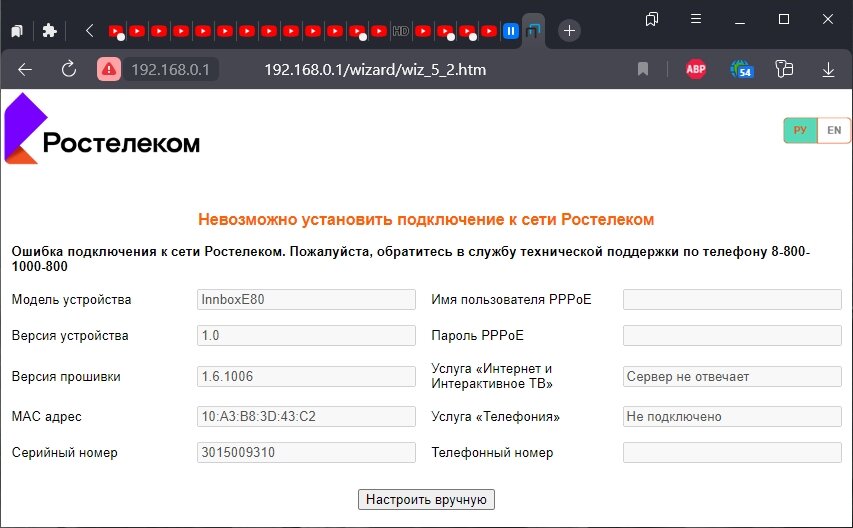больше этой хренью маяться ну нужно, скомпрометирован другой способ узнать некоторую приватную инфу о роутере, более простой и полезный, а главное, даже не заходя в вэб-морду по паролю вот ссылки, должно работать на многих моделях Innbox, и E80 скорее всего далеко не единственная железяка, где катит этот способ http://192.168.0.1/wizard/wiz_5_2.htm http://192.168.0.1/wizard/wiz_5_1.htm наиболее интересное что можно там увидеть, это: Имя пользователя PPPoE Пароль PPPoE Версия прошивки Серийный номер