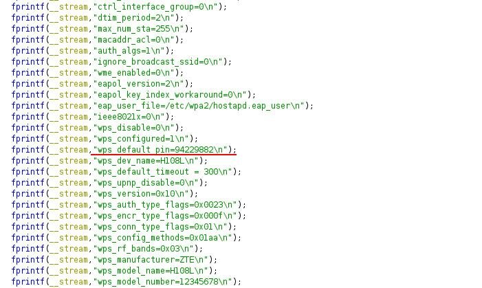 Я проверил на всякий случай в поисках констант. Пин-коды вшиты в прошивки роутеров. Пин-код для ZTE ZXV10 H108L находиться здесь: squashfs-root/bin/cspd. Для Totolink N150RT и N300RT пин-код можно найти вот тут: squashfs-root/bin/flash Ниже скриншоты находок. Прошивки брал с сайтов вендоров.