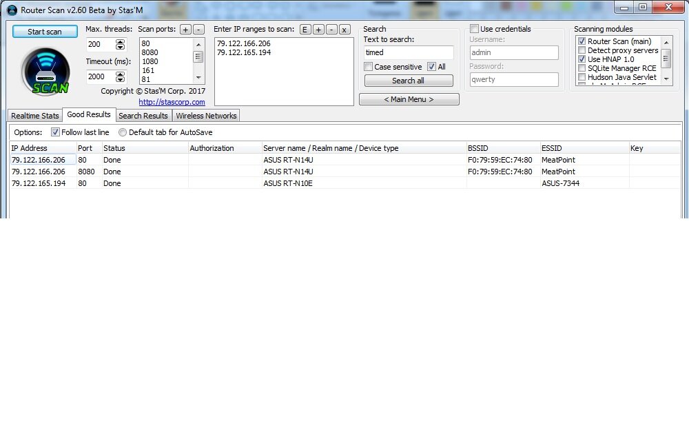 Это понятно что е Иногда ломаются такие девайсы, которых стопудово нет в RS, с паролем типа admin:admin или без пароля. А тут RS даже не написал что это Белкин