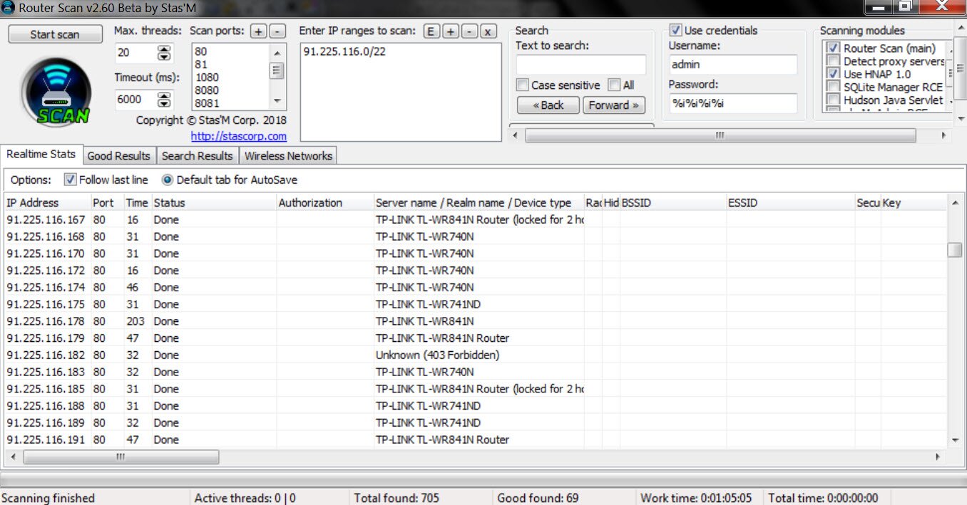 Всем здравия! Помогите одолеть TP-LINK'и (740, 741, 841). В диапазоне 91.225.116.0-91.225.119.255 их ну очень много, а Router Scan'у поддаются не более 10%.