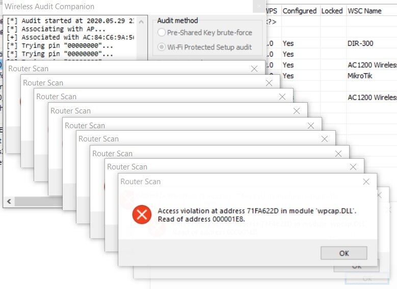 С недавних пор RS стал вываливаться на wps аудите: испробованы и npcap 9988 и последний, все одно... =(