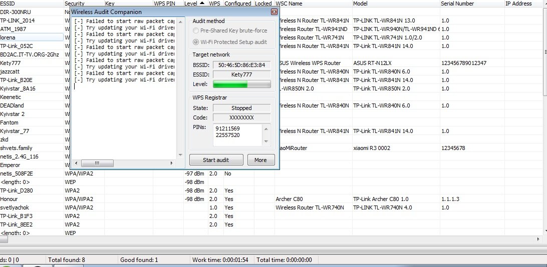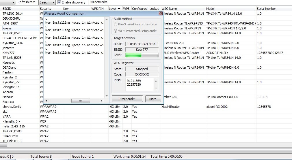 Ребят, автор, подскажите, плз, что в такой ситуации делать? Скачал Router Scaner и Npcap, но могу использовать только брут форс... Выбивает такая: " [-] Failed to start raw packet capture. [-] Try updating your Wi-Fi driver and/or installing Npcap in WinPcap-compatible mode." ошибка, как можно исправить? Когда качал Npcap, галочки ставил везде... Может есть ещё хорошие приложения? Или есть любая возможность срочно узнать пароль? Для брут форса нужно слишком много словарей, да и не факт, что хоть что-то подойдет.