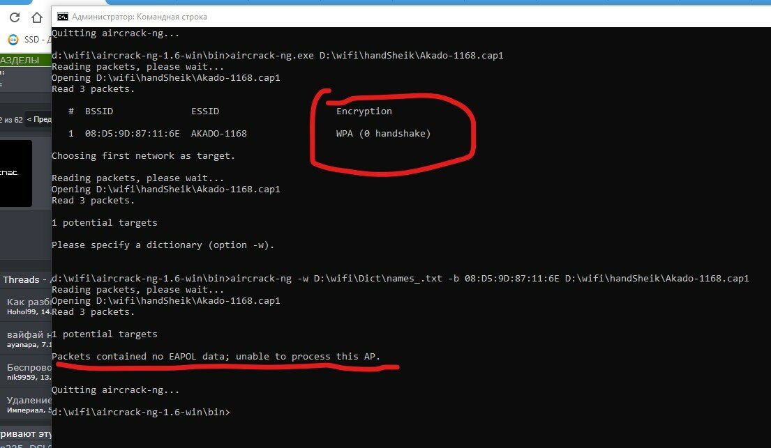 В кали wireshark показывает что есть в этом файле хендшейк(EAPOL) , а в виндах как помотереть? Ну а куда мог деться хендшейк при копировании из вирт.бок в винду, что aircrack-ng не видит его.