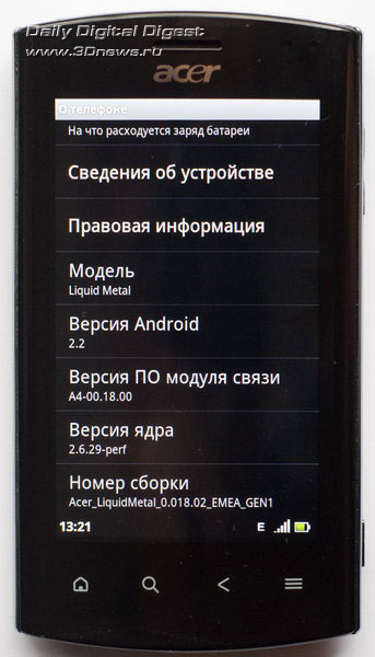 Acer Liquid Metal нельзя назвать продуктом косметической переделки предыдущей модели. Это практически новый смартфон, хотя и представляет линейку Liquid, то есть, по идее, является продолжателем ее традиций. Над его дизайном работали специалисты подразделения Packard Bell. Приятный внешний вид, неплохие характеристики, удобное управление — и все это при приемлемой цене, которая, как ожидается, будет на уровне стоимости предыдущих моделей. Добавим также, что Acer Liquid Metal работает под управлением Android 2.2 с ядром 2.6.29.
